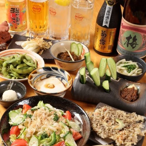 他ではわえない絶品沖縄珍味の数々で楽しいご宴会を♪歓送迎会や各種宴会に最適な飲み放題付きコースご用意しております!沖縄の代表的な料理が堪能できるな美らのコースは飲み放題付きで5000円(税込)~ご用意!